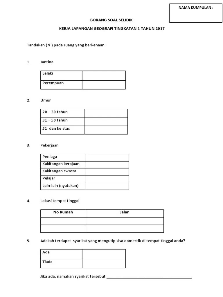 Borang Soal Selidik Geografi Tingkatan 3 / Borang Soal Selidik Pdf